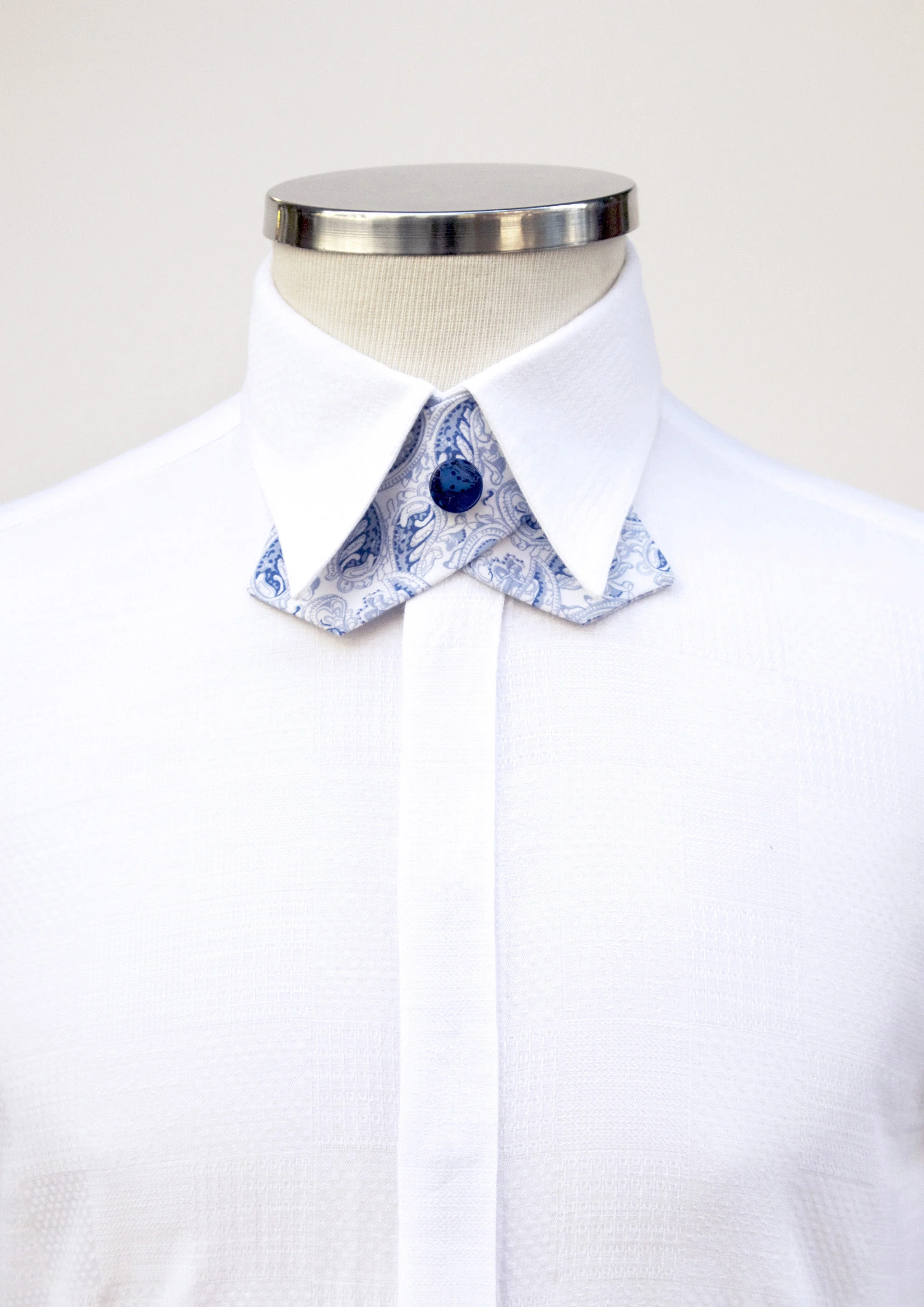 Mavi, düğmeli, şal desen, pamuk saten