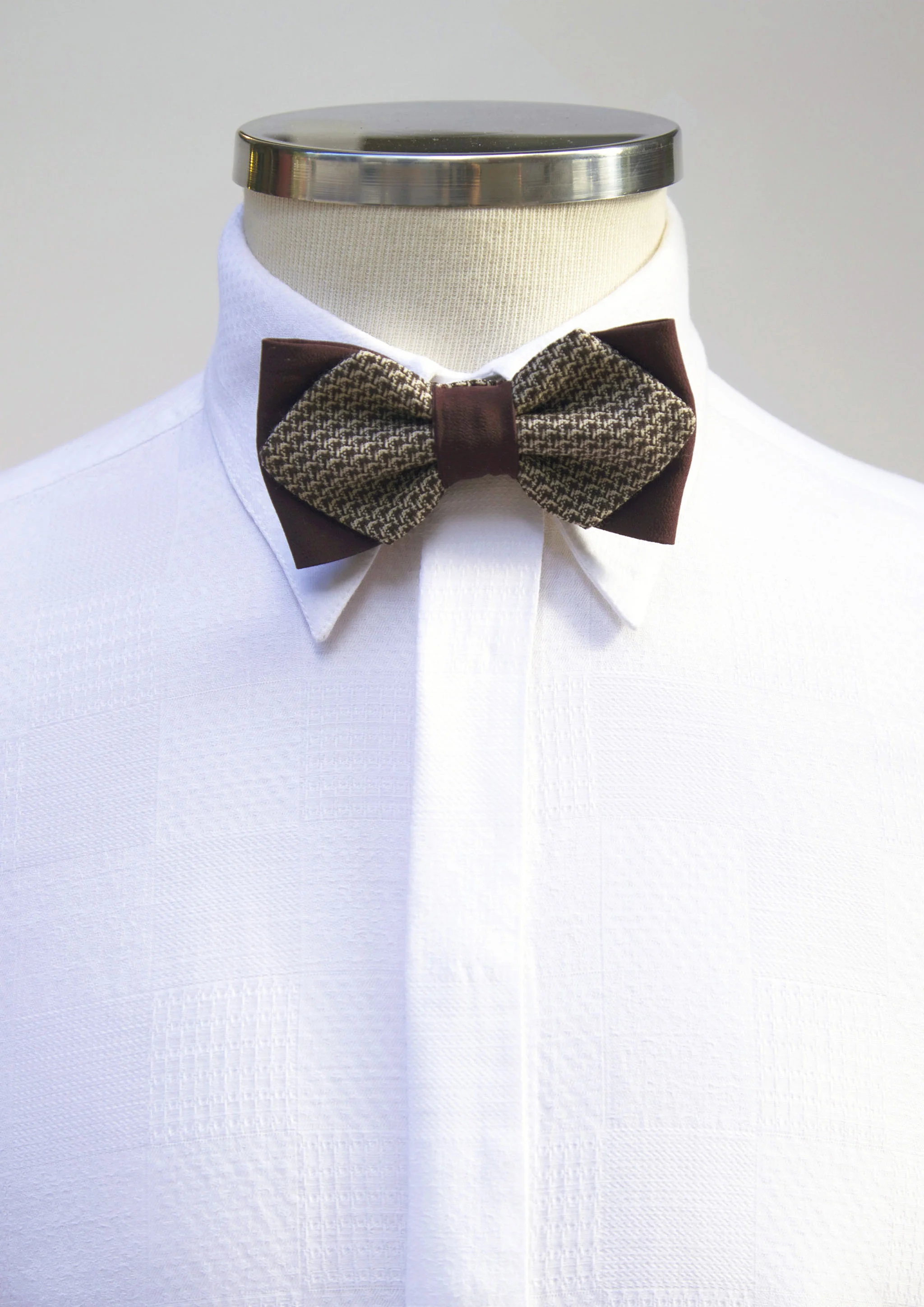 Koyu kahve, düğmeli, tüvit kumaş
