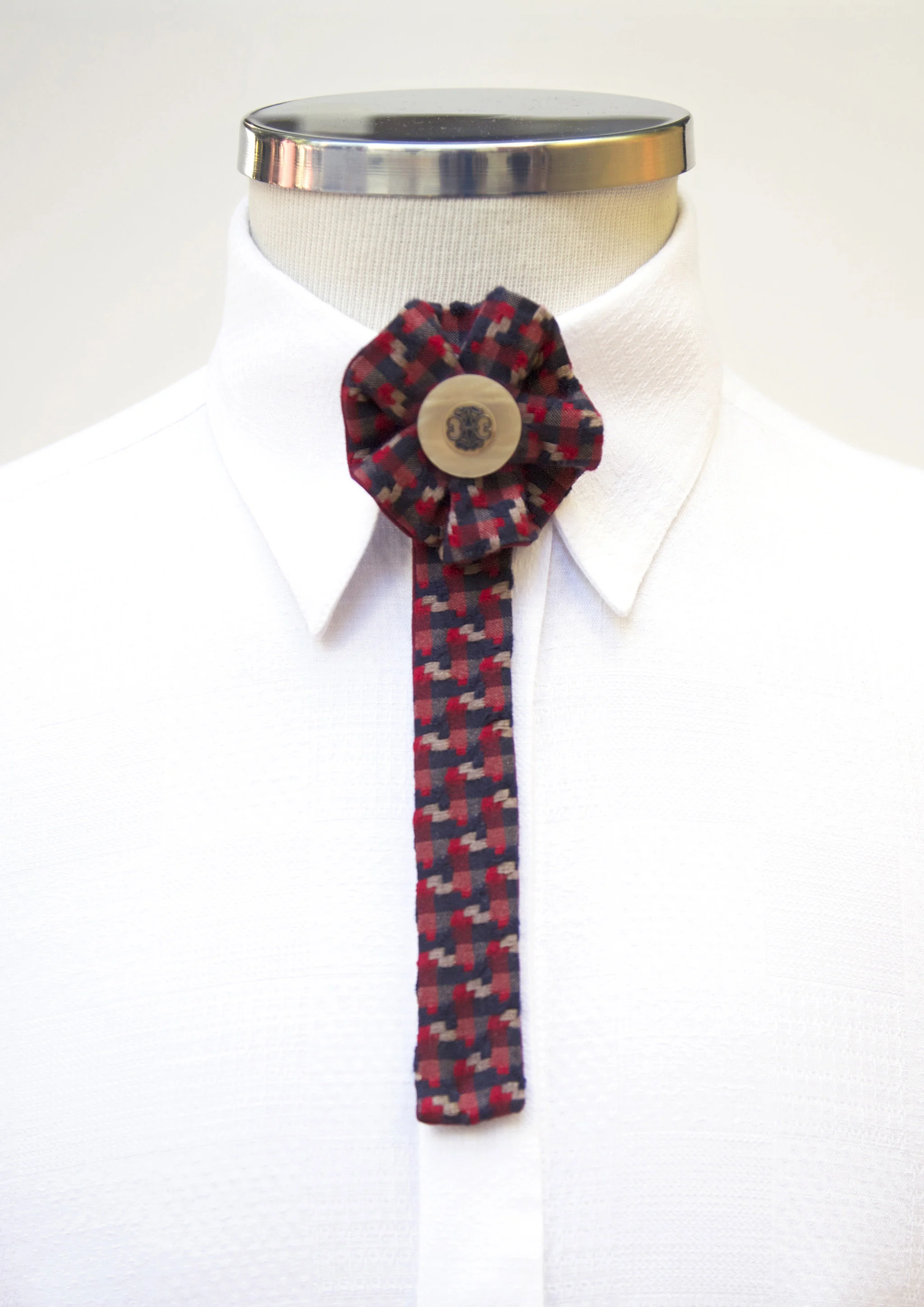 Düğmeli, geometrik desen, saten